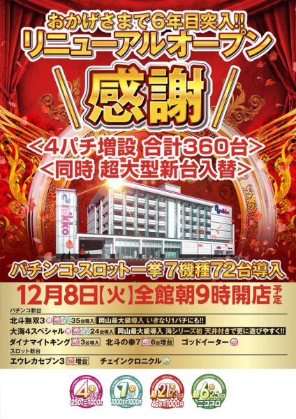 店舗 nikko十日市店 日程 2020年12月22日リニューアル 住所 岡山県岡山市北区... -