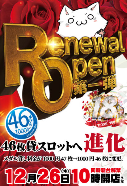 店舗 マルハン川越店 日程 2019年12月26日リニューアル 住所 埼玉県川越市中台2-5-... -